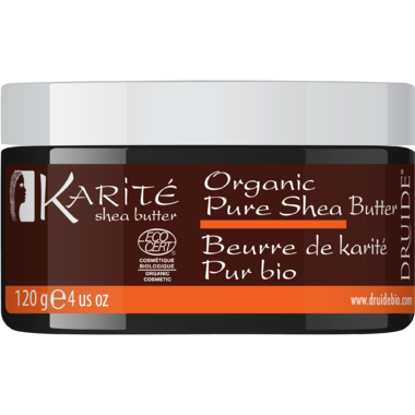 Shea butter is renowned for its protective, reparative and hydrating properties. Not only does it help to preserve skin elasticity, but it also soothes cracking and irritation caused by dry skin. The Druide Karite Pure Organic Shea Butter is certified organic and Fair Trade by EcoCert.