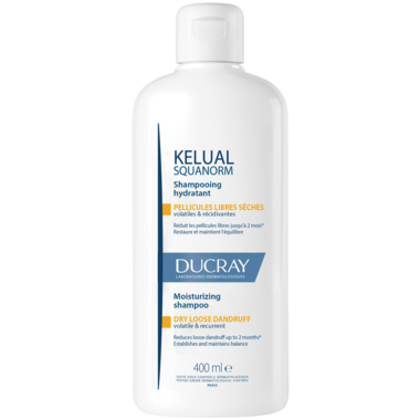 KELUAL SQUANORM Moisturizing shampoo, specifically adapted for dry dandruff, embodies the first generation of shampoos inspired by the lasting effectiveness of probiotics to effectively treat dry loose dandruff thanks to its PROBIOTIC-SCIENCE technology. Eliminates 100% of visible loose dandruff from the 1st shampoo*. Anti-loose dandruff action maintained for 2 months**. Find again a healthy, moisturized and comfortable scalp in just 6 shampoos**. *Usage test on 77 subjects for 1 month. % satisfaction on visible loose dandruff from the 1st application. **Clinical study on 23 subjects in the attack phase (3x/week for 2 weeks) and in the maintenance phase (1x/week for 8 weeks).