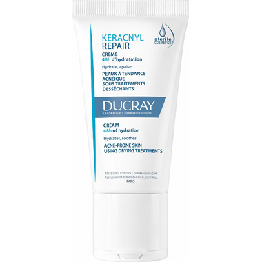 - KERACNYL REPAIR Cream is a compensating and hydrating cream for acne-prone skin undergoing a drying treatment
