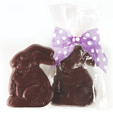 Dufflet Natural Dark Chocolate Easter Bunny is packing in a clear cello