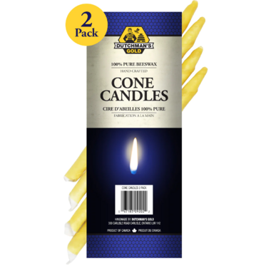These Cone Candles are made from all-natural, 100% pure beeswax and are completely free of paraffins and other additives. Pure Canadian beeswax wrapped around cotton strips makes for an elegant ivory design. These Cone Candles are narrow at one end with a slightly wider wick, makes lighting these candles simple and easy.