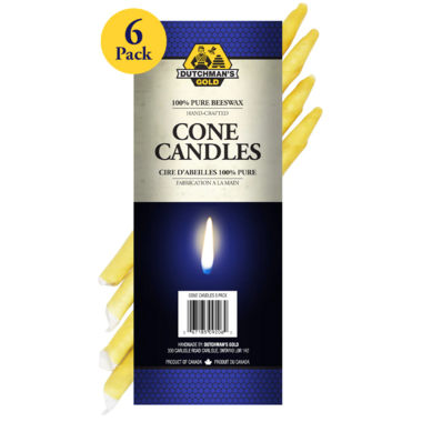 These Cone Candles are made from all-natural, 100% pure beeswax and are completely free of paraffins and other additives. Pure Canadian beeswax wrapped around cotton strips makes for an elegant ivory design. These Cone Candles are narrow at one end with a slightly wider wick, makes lighting these candles simple and easy.