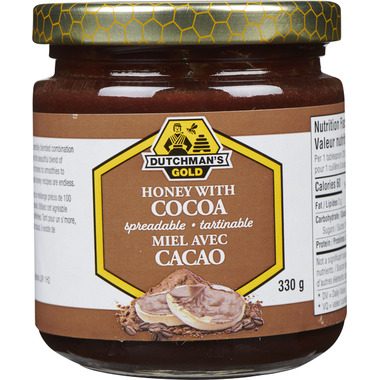 Dutchman's Gold Honey with Cocoa chocolate honey spread is a carefully blended combination of 100% cacao and Dutchman's Summer Blossom Honey. Use this beautiful blend of honey and chocolate in your favourite recipes. From s'mores to smoothies to lattes and hot chocolate, the possibilities for chocolate honey recipes are endless.