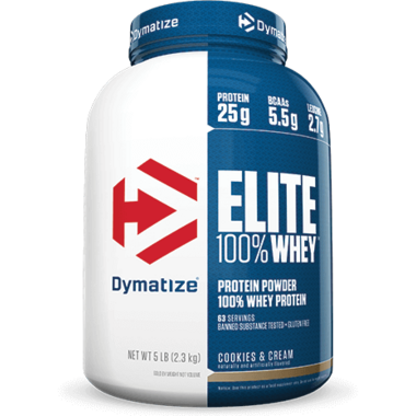 Dymatize Nutrition Elite Whey Protein Cookies & Cream will have you make the most of your workouts. Each serving of Elite Whey Protein is packed with 25 grams of high-quality, fast-digesting and absorbing whey protein, including whey protein concentrate, whey protein isolate and whey peptides to support even the most rigorous athletic and fitness goals. The superior quality of this Whey Protein utilizes cross-flow microfiltration processing to preserve the important muscle building properties of whey protein and whey protein fractions such as alpha-lactalbumin and beta-lactoglobulin, serum albumins and immunoglobulins. Elite Whey Protein is formulated by in-house research and development scientists by carefully selecting ingredients that meet Dymatize's high quality standards and specifications.
