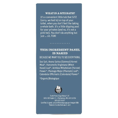 Sea Salt, Avena Sativa (Oatmeal) Kernel Meal*, Hamamelis Virginiana (Witch Hazel) Leaf*, Achillea Millefolium (Yarrow) Flower*, Plantago Major (Plantain) Leaf*, Calendula Officinalis (Calendula) Flower* *Organic