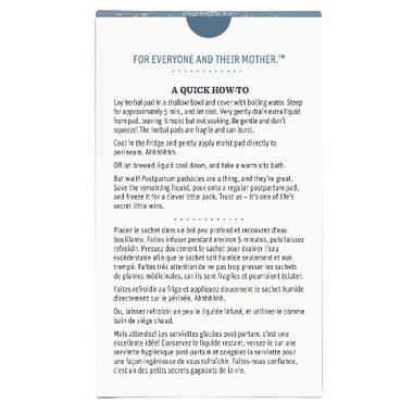 Use the brewed Herbal Sitz Bath solution to soothe uncomfortable “down there” issues in a sitz bath or to make postpartum padsicles. The sachets can be used as a soothing pad after they’ve been brewed—warm or cool.