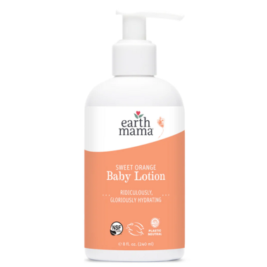 Earth Mama’s Sweet Orange Baby Lotion is a smooth, moisturizing vanilla-orange blend, rich with organic oils, calendula and rooibos to comfort and soothe delicate skin. Formulated to be safe for newborns, this lotion is good for skin of all ages.