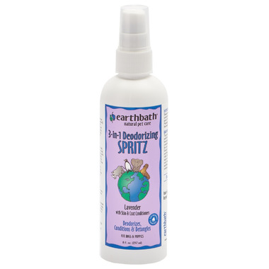 This 3-in-1 Deodorizing Spritz naturally conditions and detangles coats, while deodorizing with the fresh botanical fragrance of lavender oil. Organic aloe vera and vitamin E leave the coat exceptionally soft and bright. Use between baths to freshen, condition and detangle, or as a finishing spray after bathing your dog with earthbath Coat Brightening Shampoo. Safe for dogs over 6 weeks old.