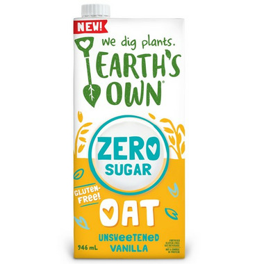 Earth's Own unsweetened vanilla, gluten free and zero sugar oat beverage.