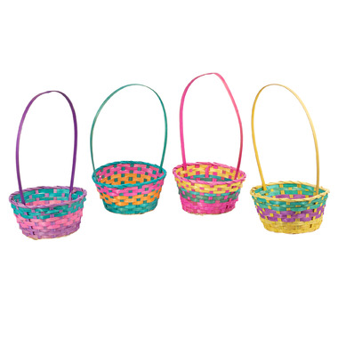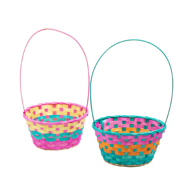 Get ready to impress the Easter Bunny with these colorful bamboo baskets featuring printed Easter images and sturdy handles. The perfect addition to Easter egg hunt supplies or fill them up with your child's favorite treats!