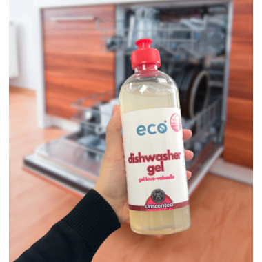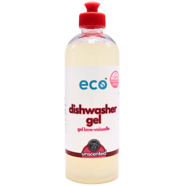Eco Company's dishwasher gel is biodegradable and gently removes tough grease and stains without prewashing. It leaves your dishes and kitchen utensils clean and sparkling. Follow dishwasher manufacturer's instructions. Fill all machine cups completely. For hard water areas or very soiled dishes, add more gel to dishwasher base. To avoid damage, ensure all items are dishwasher safe. Always wash stainless steel separately from sterling silver. Keep away from fabric. Keep out of reach of children and pets. If in eyes, rinse cautiously with water for several minutes. Remove contact lenses, if present and easy to do. If eye irritation persists, get medical attention. If on skin, wash with plenty of soap and water. If swallowed, rinse mouth and drink plenty of water. Do not induce vomiting. Seek medical attention if needed.