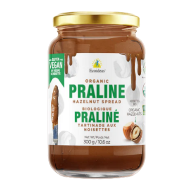 Organic fair trade cane sugar, organic hazelnut. May contain milk, tree nuts, gluten, and soy. These allergens are processed in the same facility. * Fair trade certified according to the Fair for Life standard: 30% of the total ingredients. Organic