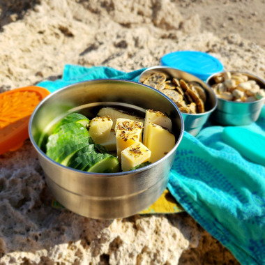 Plastic-free and leak-proof, the Blue Water Bento Seal Cup Trio is a three-piece nesting lunch container set ideal for packing a variety of foods and keeping them separate.