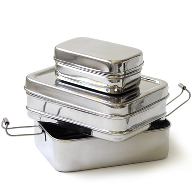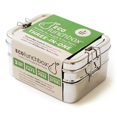 This ECOlunchbox Three-in-One is a three-piece nesting lunch box set. This nesting lunchbox makes it also easy to pack a variety of foods and keep them all separate - and safe from squishing! Three-in-One is perfect packing a healthy entree and two side dishes. The Three-in-One is modular. You can pull out the snack container and use it separately, freeing up more space in the upstairs for more food.