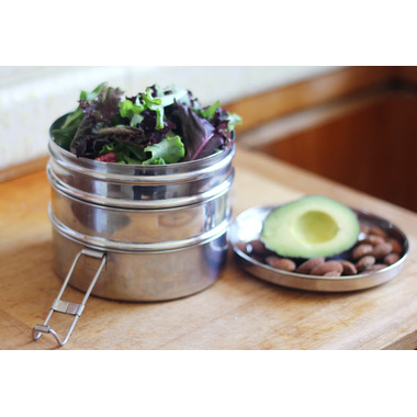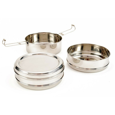 The shape of the ECOlunchox stainless steel Tri Bento is classic of the round stainless steel "tiffins" that have been used for generations throughout India. This 3-tier lunch box, however, is a stand-out due to the exceptional quality of the workmanship as well as the easy-to-use clips that won't pinch. It's the perfect 3-tier lunch box for packing a trio of your favorite lunch foods!