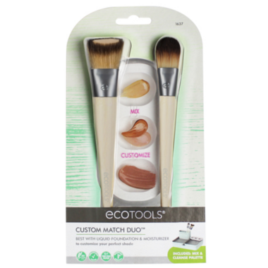 EcoTools Custom Match Duo is designed to help customize your foundation. Combine foundation colours for a custom shade, add serum and moisturizer and/or add highlighter to the mix!