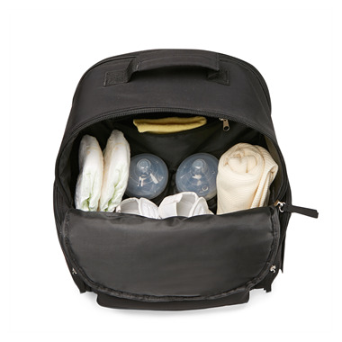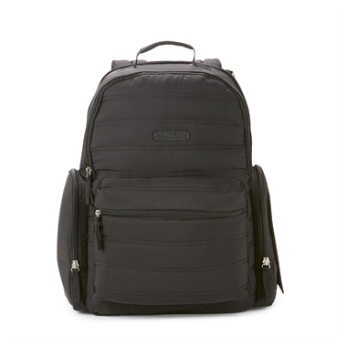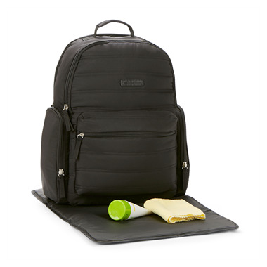 Two interior bottle pockets and one exterior insulated bottle pocket keeps bottles cool. The neutral quilted black design completes the stylish appeal of this ultra-functional bag. Front pockets securely hold wallet, cell phone, keys, and much more. For your convenience, it also features the innovative Places & Spaces organization system that includes a side pocket for your personal wipes case and changing pad great for on-the-go diapering. It is lightweight and comfortable to carry whether you use the padded adjustable shoulder straps to wear as a backpack or attach to your stroller with the stroller loops. This bag delivers the freedom to go anywhere with baby in style.