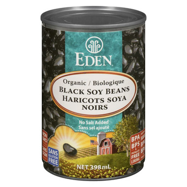 USA small farm organically grown Black Soybeans, soaked overnight and expertly cooked at Eden's certified organic and Kosher cannery. The best edible soybean, use just like any other bean. Delicious and versatile. Heart Healthy, rich in dietary fiber and soy protein, and a good source of iron, vitamin A, magnesium, and zinc. Very low sodium with no salt added. Packed in bisphenol-A free cans.
