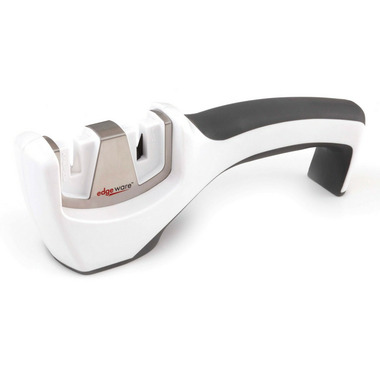 Edgeware Straight & Serrated Edge Pull-Thru Knife Sharpener uses pre-set carbide blades and crossed ceramic stones to bring your knife’s blade to razor sharpness. The triangular shaped ceramic stones can be used on either straight or serrated edges.