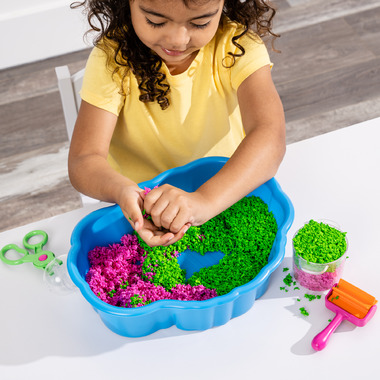 Fun you can feel! The super-soft, fluffy texture of Playfoam Pluffle is now available in the Squishology Station, a self-contained sensory bin set complete with tray and tools. Little ones can scoop, roll, dig, and pour, letting the feeling of Playfoam Pluffle ignite the senses while developing key fine motor skills.