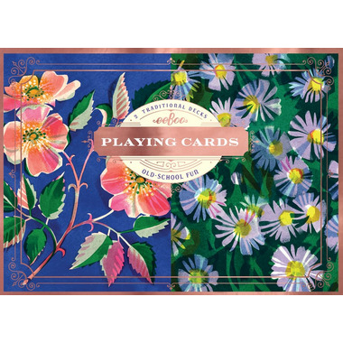 Foiled gift boxed set of playing cards by British artist, Asta Barrington. Beautiful, original illustrations and glistening metallic gilded edging make these card decks make a special gift. 52 card decks with jokers and face cards that are friendly and diverse.