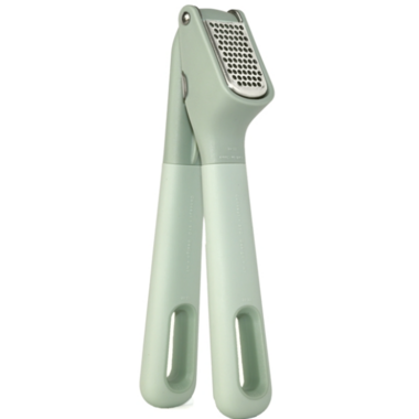 eKu's Garlic Press measures 21 cm (8") and comes in avocado. It is made from upcycled stainless steel and nylon. Large capacity chamber is made from durable carbon fiber and stainless steel mesh. Easily crushes multiple cloves at a time. Soft-touch handle is ergonomical and comfortable for any hand. Will not absorb flavours or stains during use. Dishwasher safe.