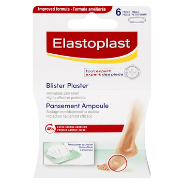 The Elastoplast SOS Blister bandage immediately relieves the pain and seals the affected area safely against dirt and bacteria. The hydrocolloid technology helps blisters heal faster. Its extra strong adhesion keeps the bandage in place for days.