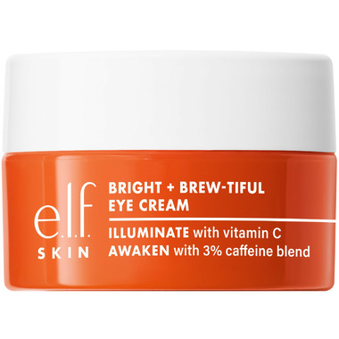 Wake the e.l.f. up with e.l.f. SKIN Bright + Brew-tiful Eye Creama brightening under eye cream that gives eyes a well-rested look. Powered by vitamin C to visibly lighten dark circles, a banana-tinted powder for instant radiance, and a 3% caffeine blend to help depuff, it's like a quick shot of eye-spresso whenever skin needs a boost. The lightweight, cooling formula absorbs quickly and layers seamlessly under concealer so you'll look like you got a full eight hours (even if you didn't).