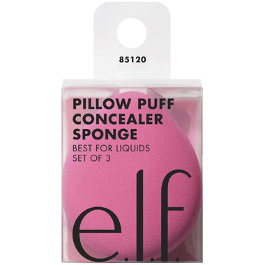 Show dark circles and spots some puff love with a set of three soft, cushiony mini e.l.f. Pillow Puff Concealer Sponges. Featuring a teardrop shape for targeted application plus dense foam that picks up the perfect amount of product, these pillowy makeup sponges seamlessly apply and blend your fave e.l.f. concealer (like Soft Glam Satin Concealer) for super smooth, even coverage.