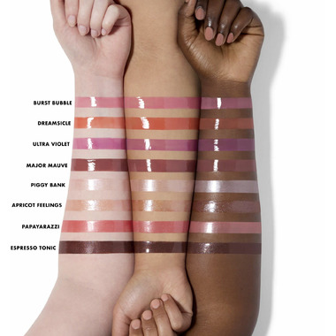 - Sheer wash of color in a range of glossy and glimmer finishes