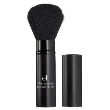 The e.l.f. Retractable Kabuki Brush is the perfect size brush for applying powder, bronzer, or blush on the go!  The soft bristles apply and blend product flawlessly for buildable coverage and the retractable head allows for controlled use and mess-free storage.  The Taklon bristles are vegan-friendly and easy to clean.
