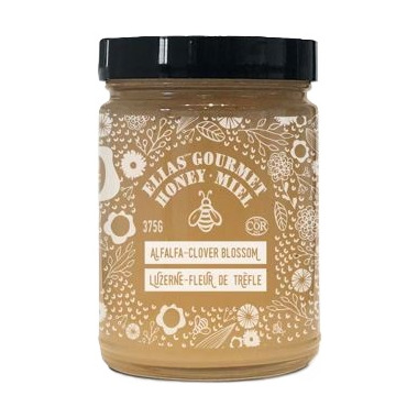Introducing Elias' line of gourmet honeys. Alfalfa-Clover blossom gourmet honey.