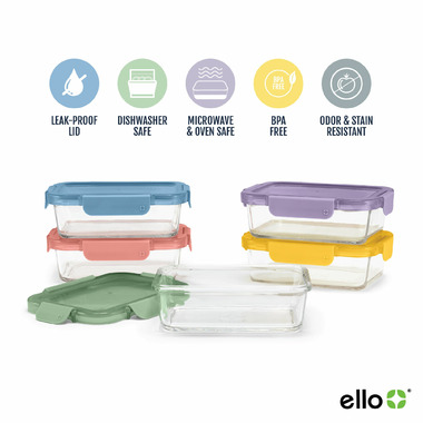 Ello Duraglass Color Lock 10pc Meal Prep Food Storage Containers