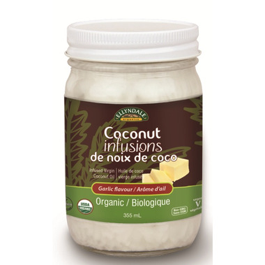 This Ellyndale garlic infused organic coconut oil has a striking, savoury, garlic flavour that is perfect on popcorn or as a spread. It can also add a boost of flavour for baking, frying and sautéing your favourite meats, fish and vegetables. Coconut oil has a high smoke point (around 375°F), so it is suitable for many cooking applications.