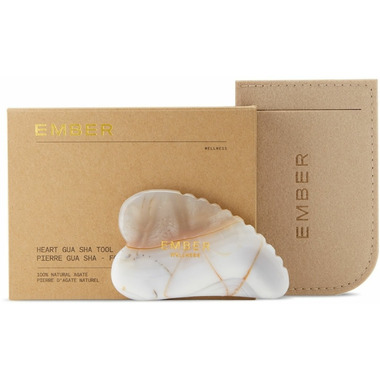 Directions: Their Heart Shaped gua sha was created with rounded ridges along the outer curvature and is ideal for encouraging lymphatic drainage along the front, side and back of the neck. After cleansing, spritz hydrosol onto your face. Then, warm facial oil in your hands and apply it to the face, neck and dcolletage. Hold the tool flat to the skin with light to medium pressure. Use upwards strokes at a 15-degree angle starting at the neck then the forehead, eye area, cheekbone and jawline. For best results, perform each movement 5-10 times.