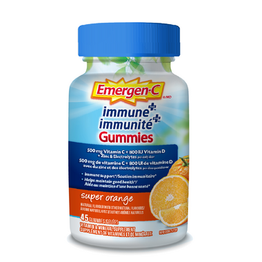 - CONTAINS 32 GUMMIES: This package includes one 45-count bottle of Emergen-C Immune+ gummies with Super Orange Fruit flavour.