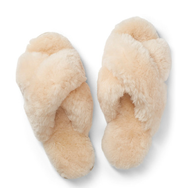 Fluffy and cozy, the women's Mayberry slider slipper encloses your