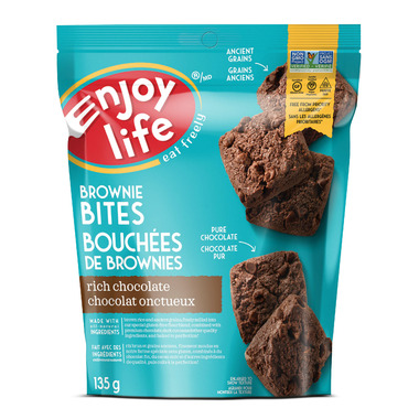 Eat freely with Enjoy Life Brownie Bites Rich Chocolate made with all natural ingredients. Brown rice and ancient grains, finely milled into Enjoy Life’s special gluten free flour blend, combined with premium chocolate, dark cocoa and other quality ingredients, and baked to perfection!