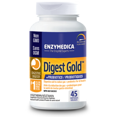 Support a healthy gut with a powerful combination of max strength enzymes and probiotics. With a 2-in-1 formula including all the benefits of Digest Gold and probiotics, itْs easy to get your gut back on track. Enzymes boost digestion, while a daily dose of 1.5 billion probiotic cultures support immune health, support regularity and bring balance back to the gut. Get the strongest support for the biggest benefit for a healthy gut and vibrant health! Not all enzyme supplements are created equal. Digest Gold +PROBIOTICS contains powerful enzymes like amylase, lipase, cellulase and protease. These enzymes break down complex foods like carbohydrates, fats, fiber and protein. Enzymedica's proprietary Thera-blend technology means that the enzymes found in Digest Gold +PROBIOITICS will work throughout the entire pH spectrum found along your digestive tract. When other brandsْ enzyme formulas may fall short, in almost all acidic or alkaline environments, Digest Gold +PROBIOTICS will be effective.