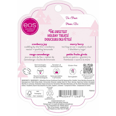 eos Limited-Edition Lip Balm Sticks are the sweetest holiday treats! Whether it’s a gift for yourself or for someone you love, enjoy the taste of holiday magic in every swipe. We pack our products with natural and sustainably-sourced ingredients like soothing shea butter, weightless coconut oil and protective antioxidants for all-day moisture.