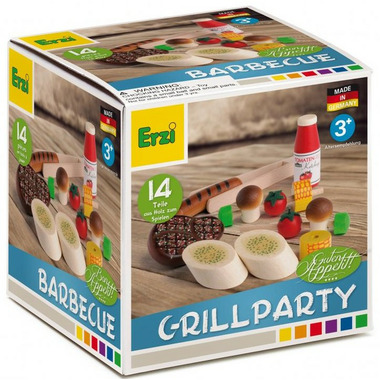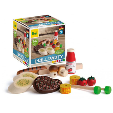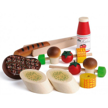 - Includes: 1 grill steak, 1 fried sausage, 1 bottle of ketchup, 1 pair of grilling tongs, 2 herb baguettes, 2 vegetable skewers each waiting to be dug into tomato, mushroom and sweet-corn nibbles