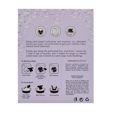 These eco-friendly, plant-based laundry sheet contains ultra-concentrated effective cleaning power, packed into a tiny, pre-measured sheet of detergent! Simply toss in your laundry and wash. The strong cleaning formula uses plant enzymes to trap and and dislodge dirt from clothing. Works in all types of washing machines, including high-efficiency (HE). Packaging is entirely plastic-free, each box provides up to 48 loads. It is also free of starch, chemicals, dyes, parabens, and phosphatessuitable for intimates and baby clothing. Clean, green, cost-effective and convenient.
