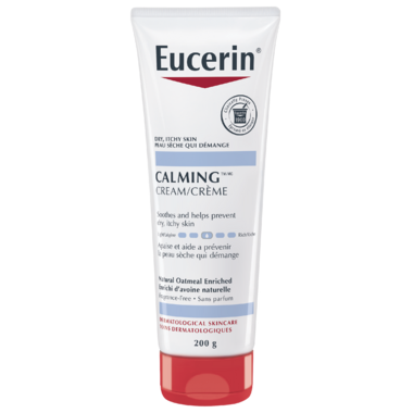 Calming body crème with Colloidal Oatmeal. Eucerin Calming Daily Moisturizing Crème soothes and moisturizes to help prevent very dry skin that can lead to itching due to dryness.
