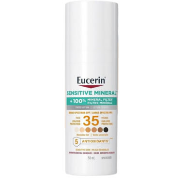 Eucerin Sun Tinted Mineral Sunscreen Face Lotion is a lightweight sunscreen with a sheer finish that blends seamlessly into all skin tones.