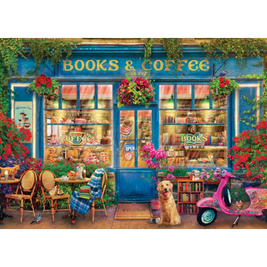 Escape to the cozy world of books and coffee with the Eurographics 1000 Piece Puzzle: Books & Coffee. This stunning puzzle features a detailed and atmospheric image of a bookstore cafe, complete with towering shelves of books, inviting tables, and delicious-looking coffee and pastries.