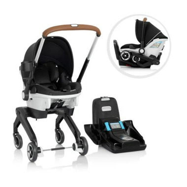 With the DualRide stroller and car seat combo, the extras aren't extra! A removable carryall storage bag and removable parent cup holder are included. Another plus: Wheels nest securely in the base wheel wells in your vehicle, so you can take just the carrier into your home without tracking in dirt. To finish it off, Evenflo Gold's DualRide features the most sophisticated silhouette and premium details, including vegan leather trim, chrome zippers and pulls, plus washable padding, to ensure you make the Shyft to new parenthood in style. Shyft into action, effortlessly! ,