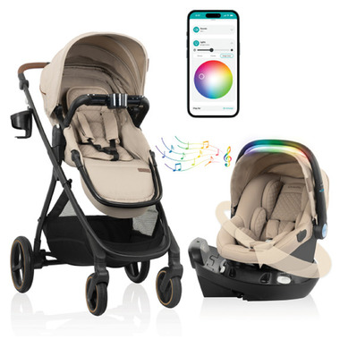 Have it all and more with the Evenflo Shyft Intuiti+ Travel System featuring Revolve180 LiteMax NXT Rotational Infant Car Seat with SensorySoothe. This travel system provides a lightweight, luxury stroller for a smooth, fine-tuned ride and an exclusive rotational infant car seat that will wow you. Integrated into Revolve180 LiteMax NXT’s handle, one-of-a-kind SensorySoothe technology engages and calms your baby with lights, music and sounds. Cue a mesmerizing light show via the Evenflo app on your phone! Integrated SensorSafe technology adds a layer of protection. Designed for infants 1.4-10 kg (40-74 cm), the infant car seat offers one-hand, 180 rotation for easy in and out.