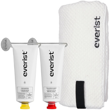 Packed in a reusable canvas Everist bag, The Quick-Dry Hair Towel helps reduce frizz and breakage, while shortening drying time by up 50%. An essential part of your post-shower routine, use this cloud-like hair hero as a speed-pass to your silkiest, shiniest strands.