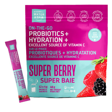 Everwell Water Kefir On-The-Go Probiotic + Hydration Powder Super Berry