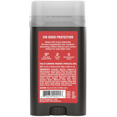This product gives you exceptional performance using only naturally derived ingredients. No aluminum, no parabens, no phthalates, no dyes and never tested on animals.